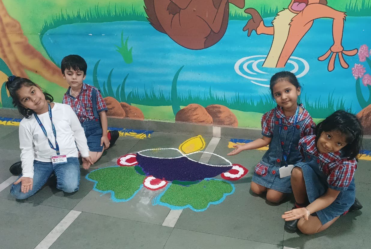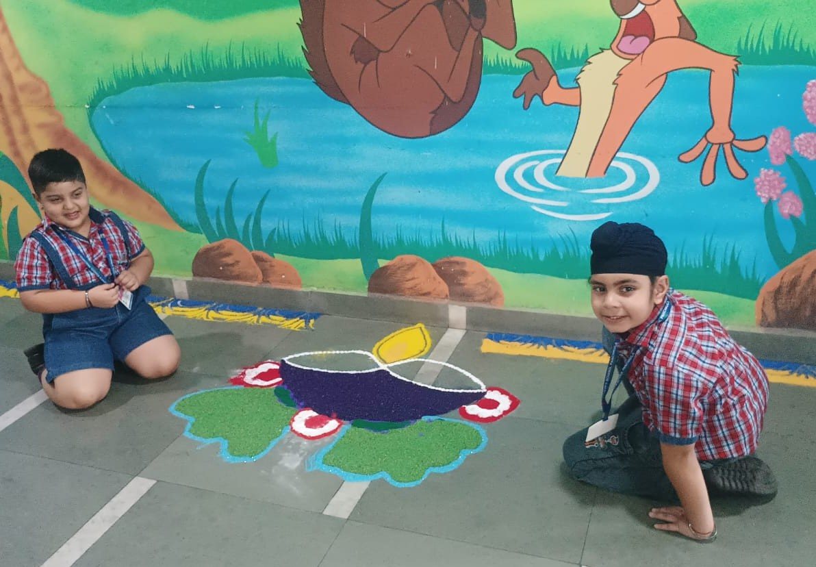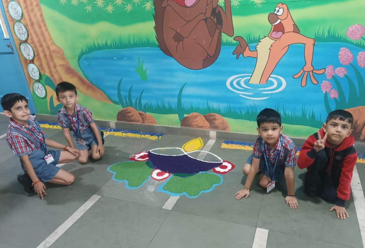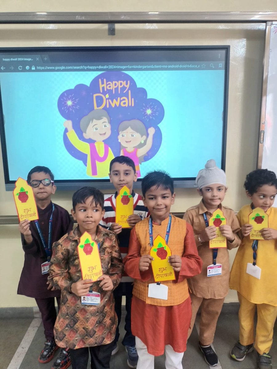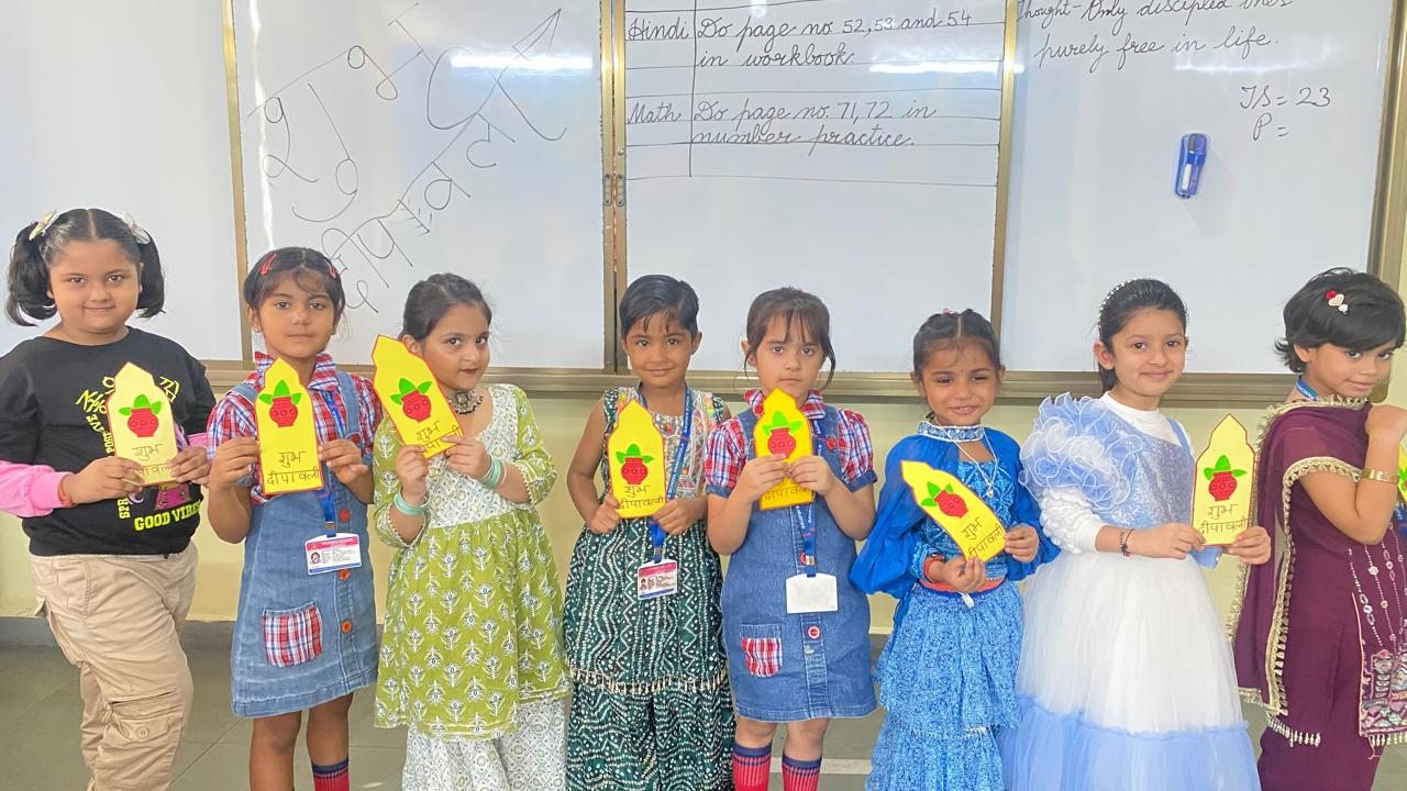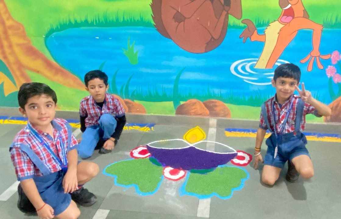 The entire school was adorned with colourful buntings, rows of diyas, and intricate rangoli designs, transforming the campus into a visual delight. The celebration emphasized a meaningful message: truth and goodness will always triumph.