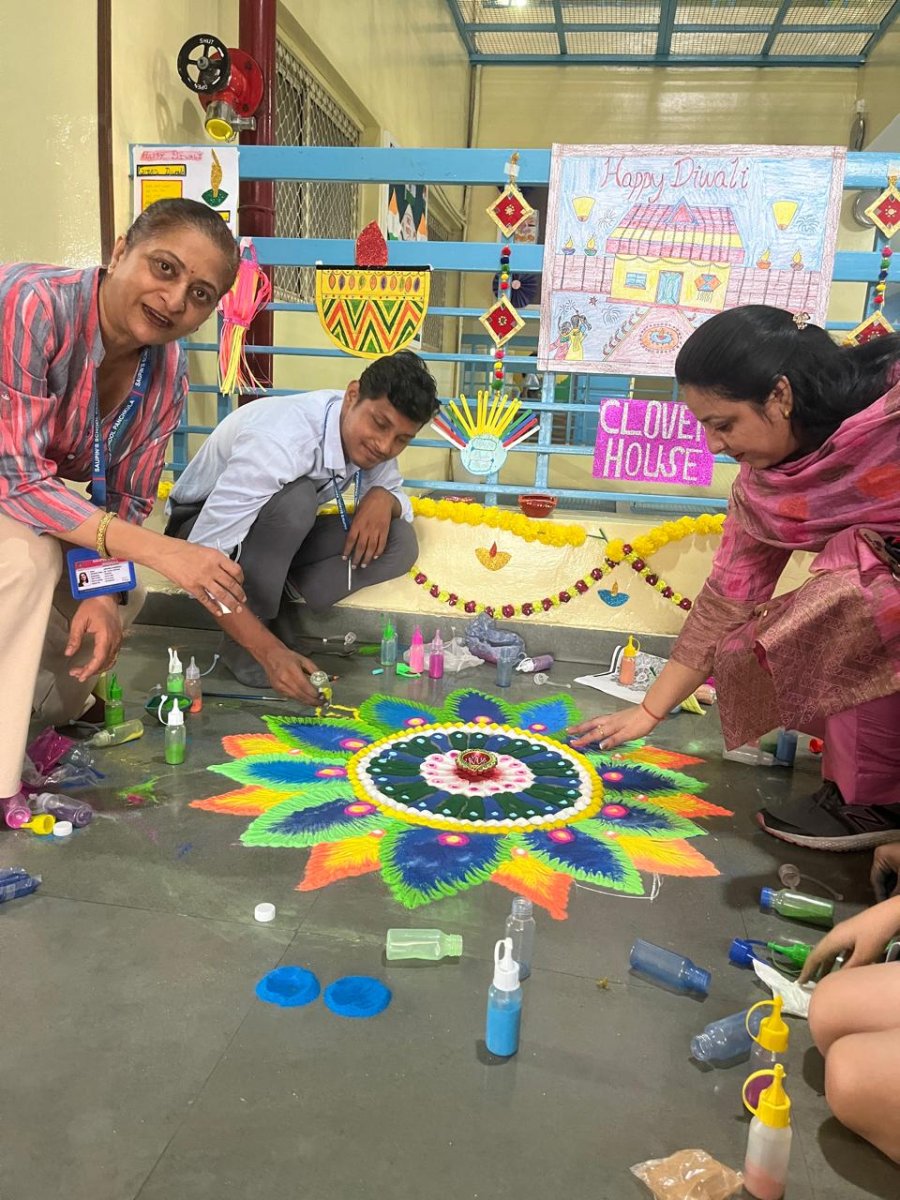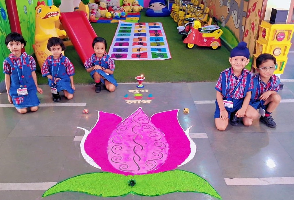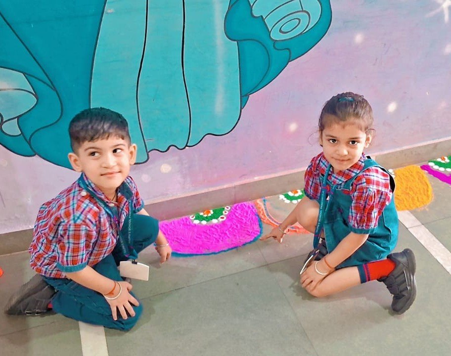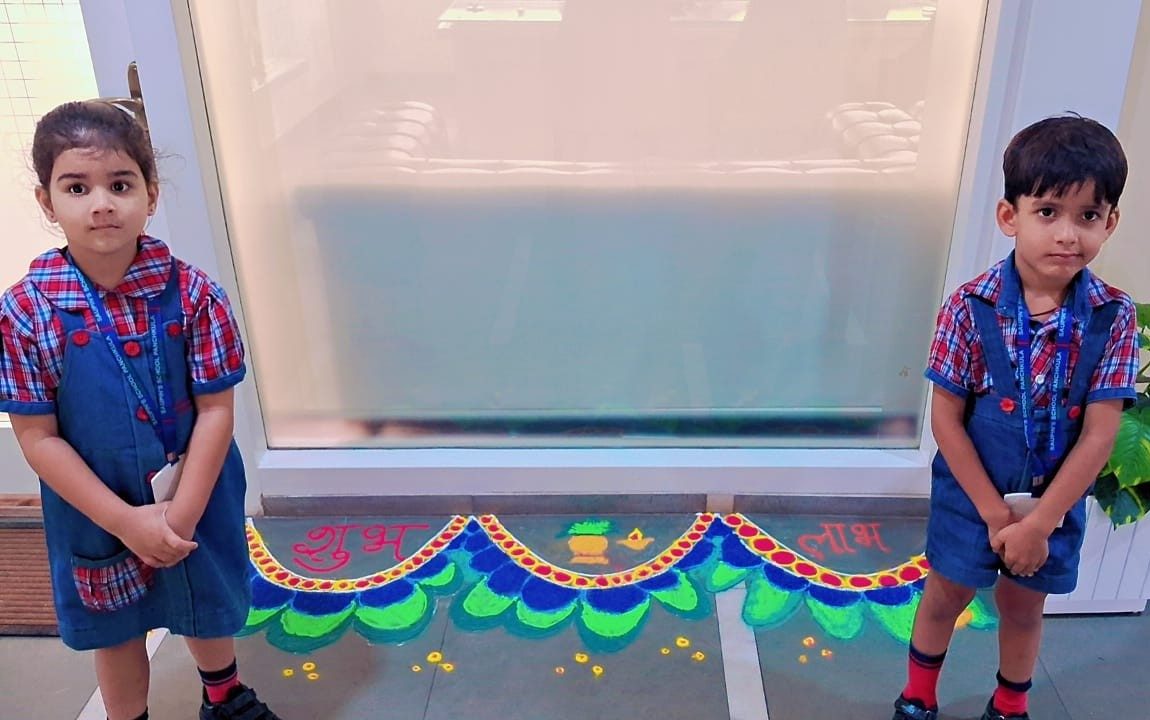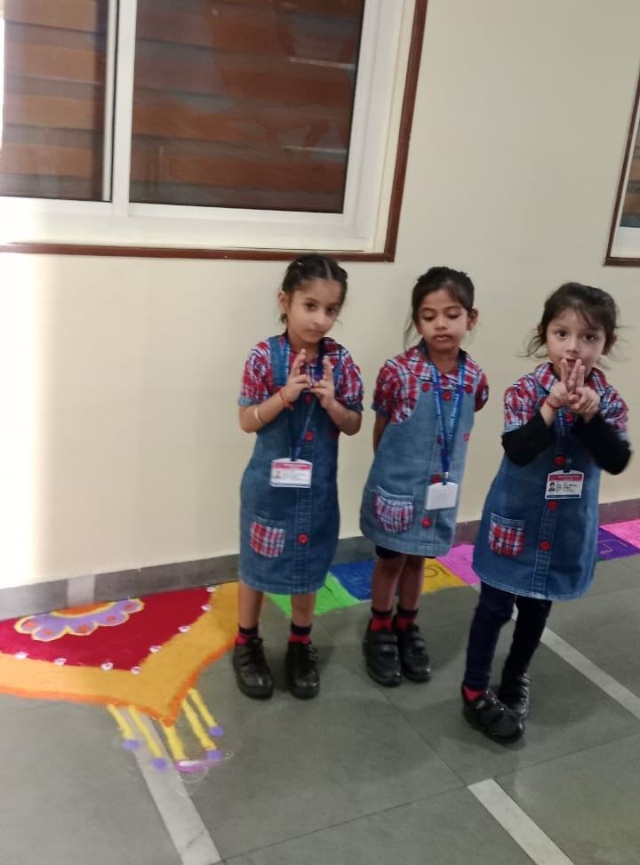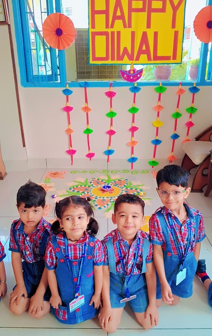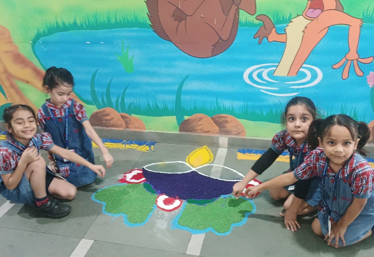 The entire school was adorned with colourful buntings, rows of diyas, and intricate rangoli designs, transforming the campus into a visual delight. The celebration emphasized a meaningful message: truth and goodness will always triumph.